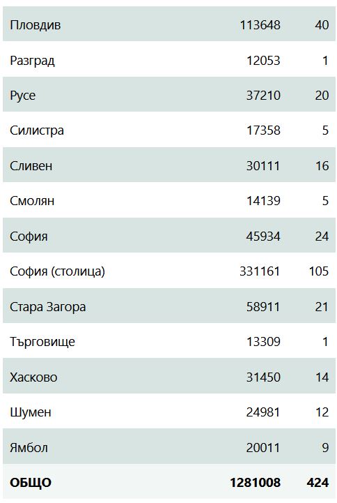 424 са новите случаи на ковид у нас. Направени са 3 987 теста. Това демонстрират данните на Единния информативен портал.