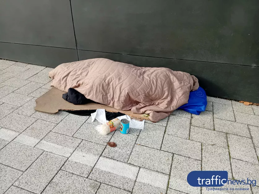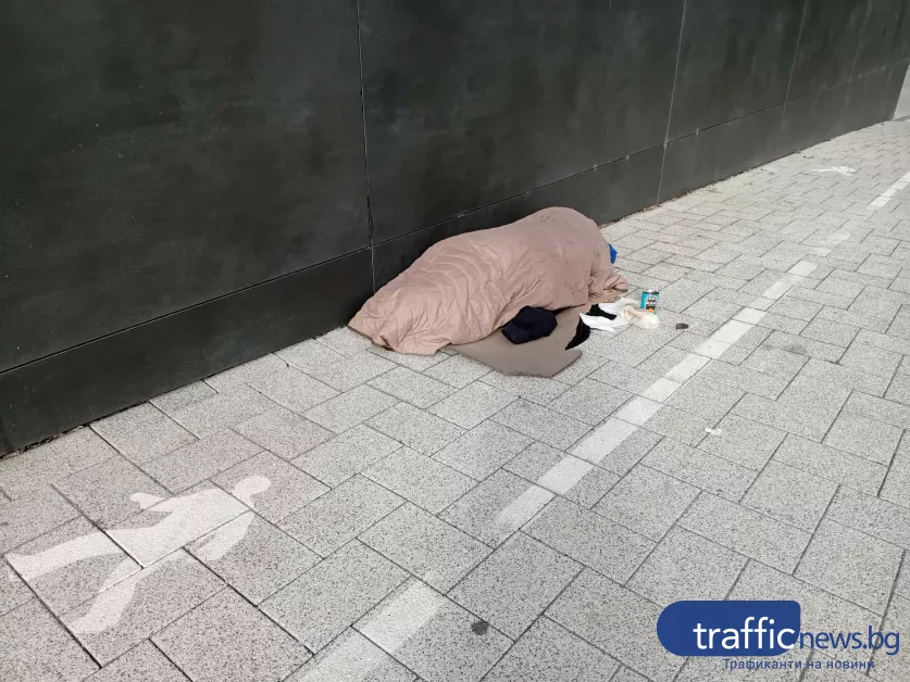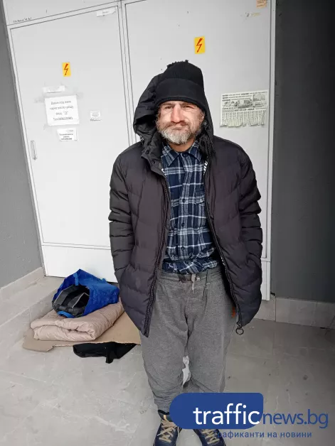 45-годишен скитник прекарва дните и нощите си навън в Пловдив, макар минусовите температури. Мъжът спи на картон, увит с едно одеяло и яке, във вътрешния двор на жилищен комплекс Platinum Homes, ситуиран до моста на Адата на бул. „ Марица “ №160.