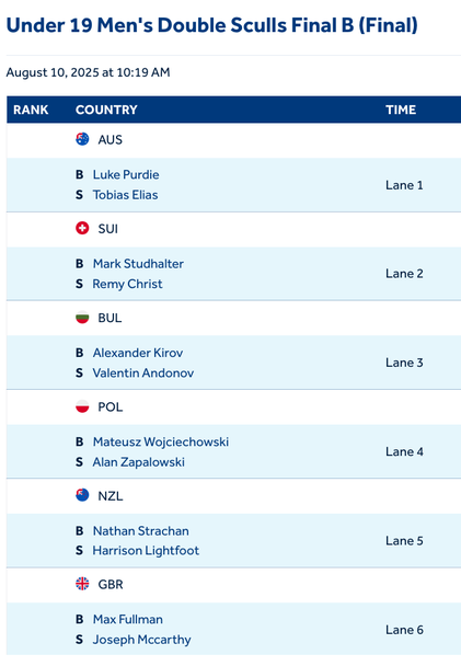 При девойките Румяна Стоянова остана 5-а в своя четвъртфинал на скиф. 16-годишната националка от Армеец ще гребе във Финал D за 19-та – 24-та позиция в дисциплината с най-вече участници на шампионата.
