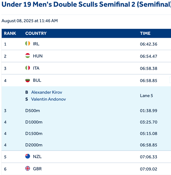 Александър Киров и Валентин Андонов направиха страхотна гонка във втория полуфинал и със мощно гребане в последните 500 метра сложиха под сериозен напън Италия. В последна сметка обаче доста малко лиши нашите от място измежду най-хубавите 6 лодки на планетата.