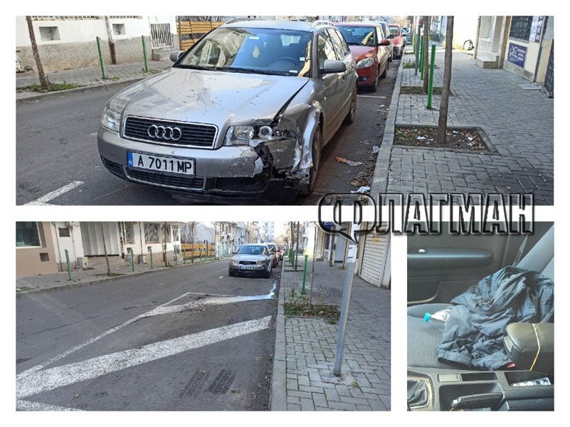 Свидетели оповестяват още, че сивото " Ауди комби " се е движело криволичейки по ул. „ Любен Каравелов “ от ул. „ Цар Калоян “ в посока „ Гладстон “. На метри от кръстовището се е блъснал в паркиран автомобил.