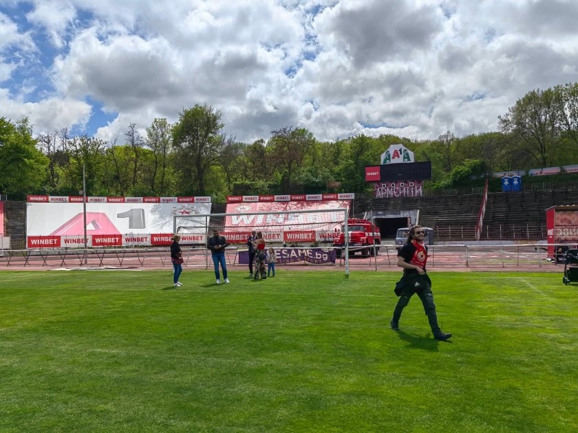 Още от сутринта на стадиона бяха две от най-големите митове на клуба - Димитър Пенев и Георги Велинов, който на следващия ден чества имен ден. Двамата се снимиха с малчуганите, поговориха с тях, а фотосите, които направиха, ще оставят в главите на децата дълготраен спомен.