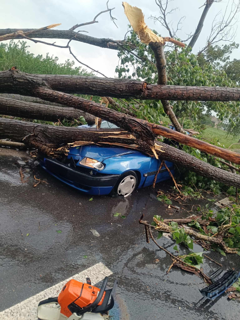 50-годишен мъж оцеля по знамение, откакто дърво се стовари върху колата му. Буря в региона на Чешнегирово заварила лидера на път. Проливният дъжд и неналичието на видимост принудили мъжът зад кормилото да спре и да изчака.