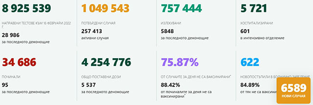 1 049 543 са общо доказаните случаи на новия ковид у нас все още. От тях дейни са 257 413.
