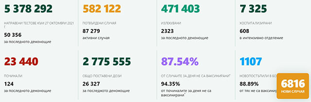 23 440 са умрелите лица, при които е била установена коронавирусната зараза. 124 нови случая са регистрирани през последните 24 часа. 94,35 % от умрелите лица не са били имунизирани. Ден по-рано новите случаи на COVID-19, регистрирани у нас бяха с близо 1000 по-малко - 5863, а преди седмица, във вторник - 4957.