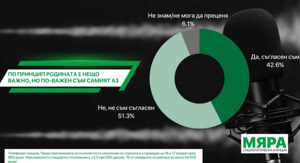 На въпрос " По принцип родината е нещо значимо, само че по-голям съм самият аз... ", българите дават отговор: