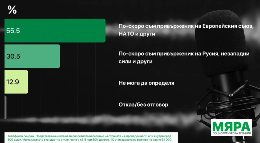 55.5% по-скоро са последователи на Европейски Съюз, НАТО и други.