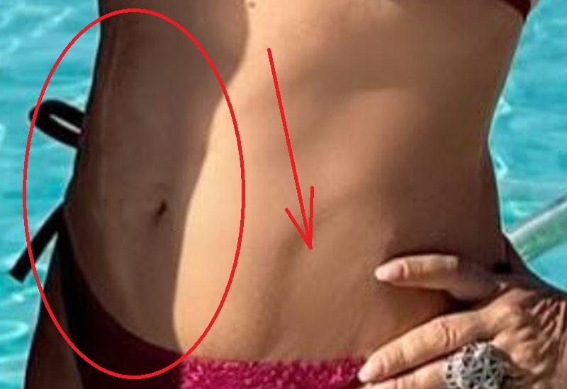 Зоркото око на обаче видя притеснителни белези на корема й, които приказват за зверска интервенция с над 20-сантиметров прорез. Преди няколко години Мадам Мулти в реалност имаше съществени здравословни проблеми и се наложи да се оперира, като съгласно слуховете е ставало въпрос за гинекологично заболяване.