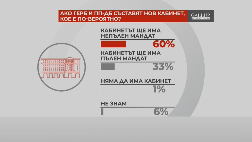 Едва 33% от интервюираните са на мнение, че кабинетът ще изкара до края на 4-годишния мандат след ротацията. Последното изискване, обещано от ГЕРБ-СДС е в случай че се излъчи нов кабинет с министър председател Мария Габриел, той също да подаде оставка след 9 месеца - през декември 2024 година До края на мандата се плануват още две ротации - този път през интервал от 15 месеца