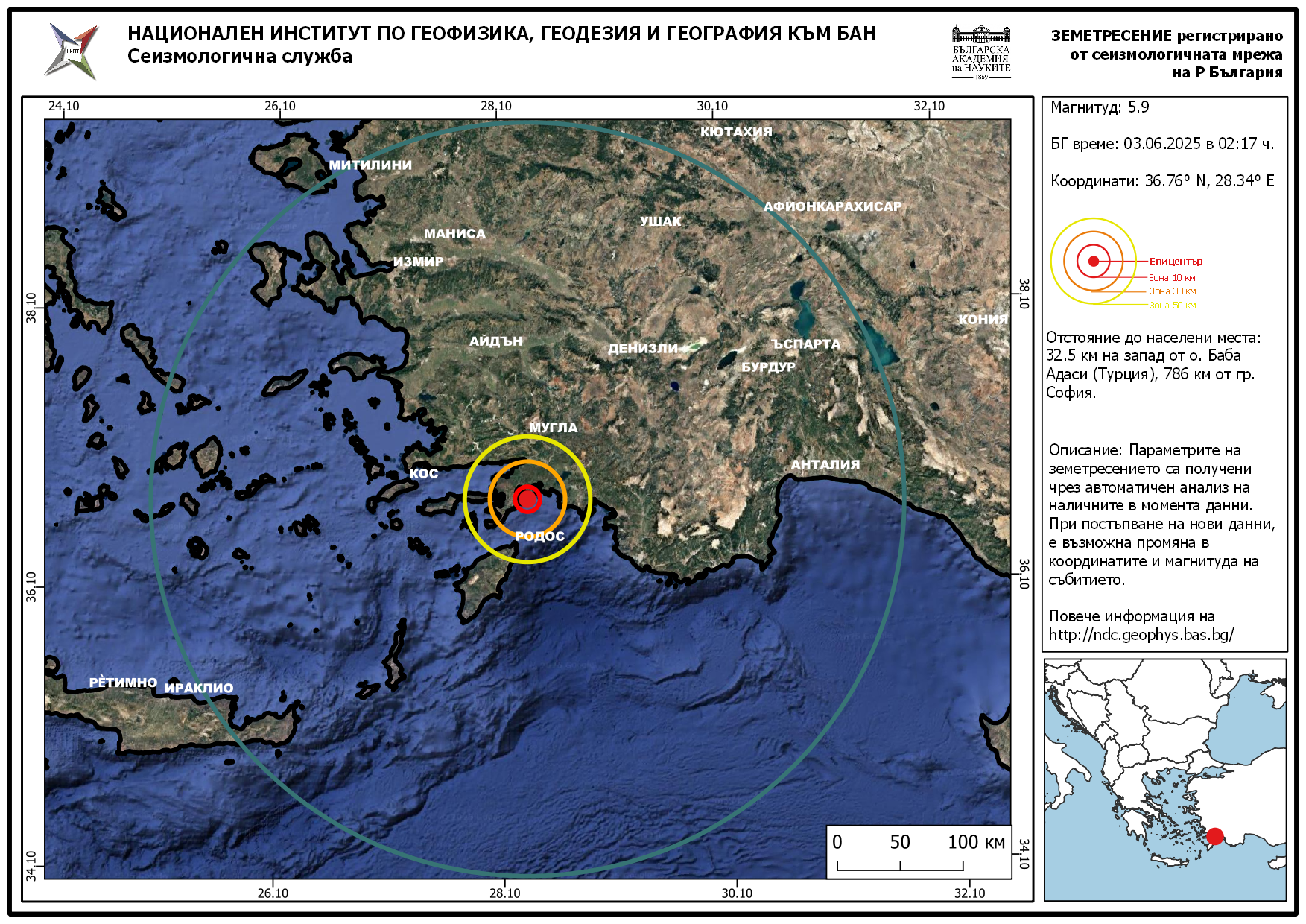 69 души пострадаха, а 14-годишно момиче е починало при земетресение с магнитуд 5.9 по скалата на Рихтер на 10 км от окръг Мугла. То е записано в 2:17 ч. през нощта на вторник, на дълбочина от 10 км, по данни на Българска академия на науките.