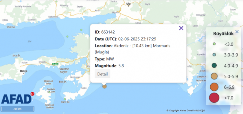 ???? AFAD, Muğla açıklarındaki depremin büyüklüğünü 5.8 olarak açıkladı.