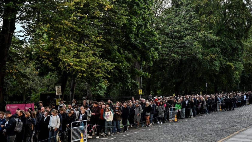 Хиляди британци ще почетат Елизабет II, като към този момент се редят на дългата опашка. Мъж при започване на колоната сподели пред БиБиСи в четвъртък заран, че е чакал 8 часа.