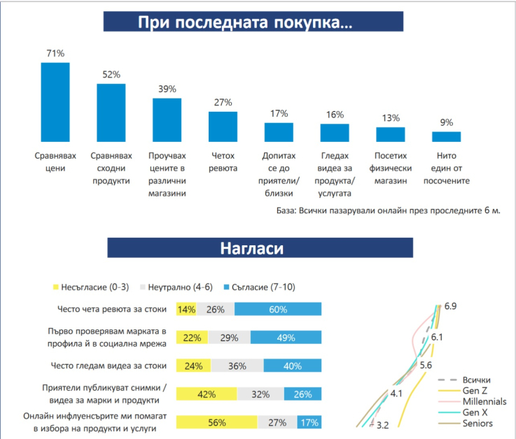 Данните в отчета демонстрират, че българският онлайн пазар е ценово чувствителен и забележителен дял от купувачите вършат авансово изследване на търсените продукти/услуги и съпоставяне на цени. Степента на преданост към употребяваните онлайн магазини е висока, установяват от Market LINKS.