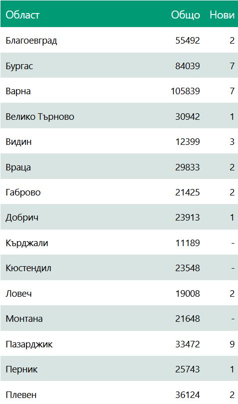 Ето по какъв начин са разпределени новозаразените по области: