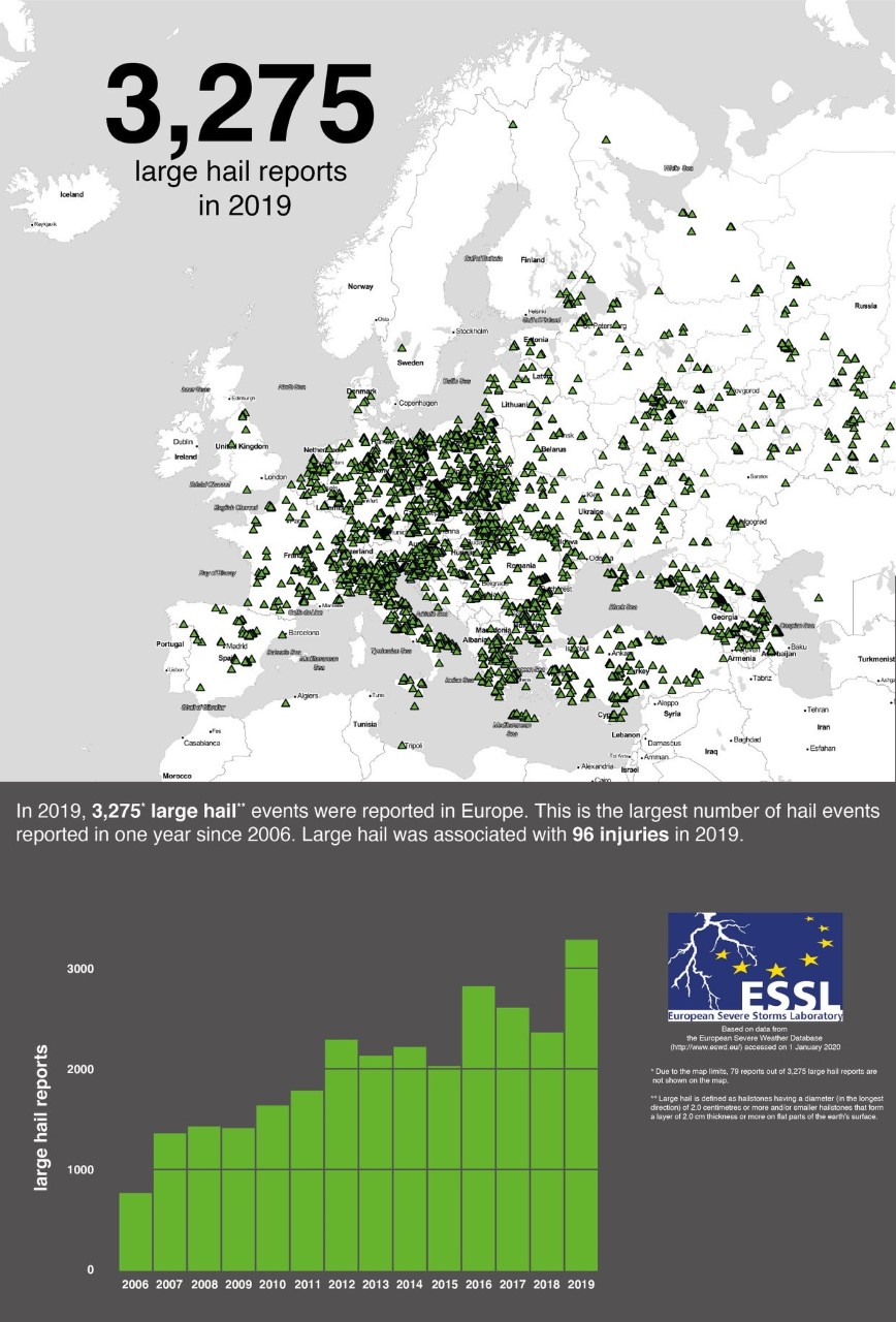Случаите на градушка през 2019 година са били 3275 с 96 ранени, демонстрира още статистиката. От 2006 година насам това е най-тежката година с най-вече регистрирани градушки.