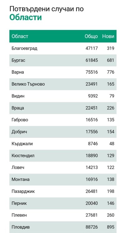 8142 ковид позитивни – как са разпределени по области и коя е №1?