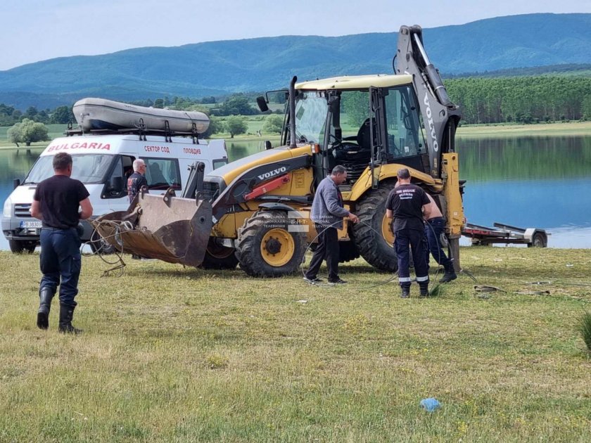 При идване на място служители на реда са открили, че във вътрешността във водите на язовира се вижда тавана на джип, а след това е открито,че вътре в купето имало тяло на мъж.