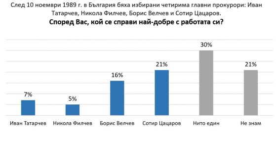 В годината на избор на нов основен прокурор социологическата организация слага и въпроса кой от основните прокурори се е справил най-добре с работата си.