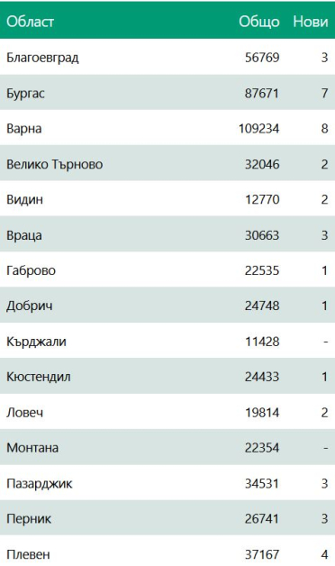 Ето по какъв начин са разпределени новозаразените по области: