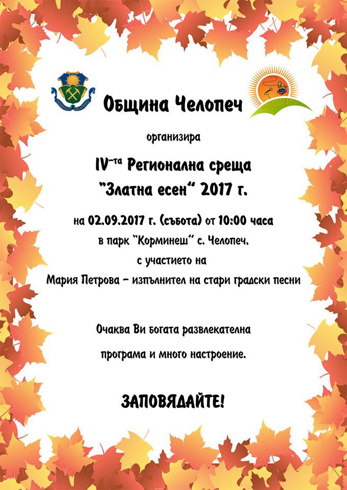 Община Челопеч организира Златна есен 2017 ... 2017-08-24 | 13:10:48 | София - T + Община Челопеч организира Златна есен 2017 Източник: actualno.com СПОДЕЛИ СТАТИЯТА ОЩЕ ПО ТЕМАТА община челопеччелопеч организираорганизира златназлатна есенесен 2017общиначелопечорганизиразлатнаесен2017 КОМЕНТАРИ НАПИШИ КОМЕНТАР