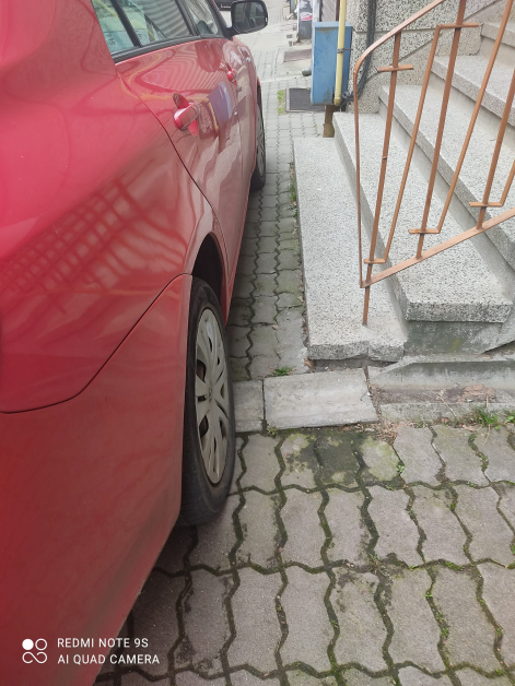 " А това разрешено ли е - да се стопира лека кола навръх тротоара, пред стълбището на основния вход на жилищна кооперация ", това написа в обществената мрежа Фейсбук Божидара Петрова.