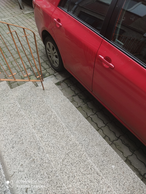 Жената е прикрепила фотоси към обявата в мрежата, на които се вижда, че лек автомобил с марката " Тойота " е блокирал стълбището на вход на жилищна кооперация във Велико Търново.
