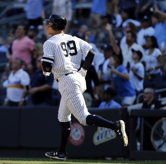 Аарън Джъдж изстреля два хоумръна във втори следващ мач и усъвършенства върха за най-вече удари над оградата на новобранец в МЛБ. 25-годишният аутфилдер на Ню Йорк Янкис към този момент има 50 хоумръна от началото на сезона и по този начин задмина с един върховото достижение, датиращо отпреди той да се роди.