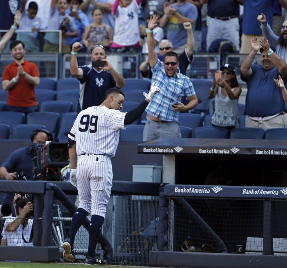 " Целият сезон е необикновен. Дори не мога да изкажа задоволително признателност на клуба и на всички съотборници, че получих шанса да бъда тук. Благословен съм, че мога да играя всеки ден. Чувството е необикновено ", увери Джъдж, който счупи върха при домакинската победа на " янките " с 11:3 против Канзас Сити Роялс.