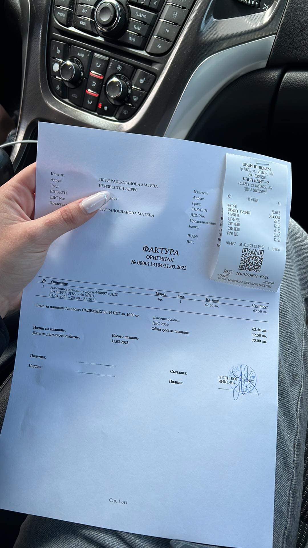 " Обсъдихме всичко с госпожа Дренска и тя ме увери, че е нужно единствено да платим и да се разберем за времетраенето и всичко е готово. Внесохме парите още същия ден и получихме фактура (прикачена по-долу) ", споделя Мария Петрова.
