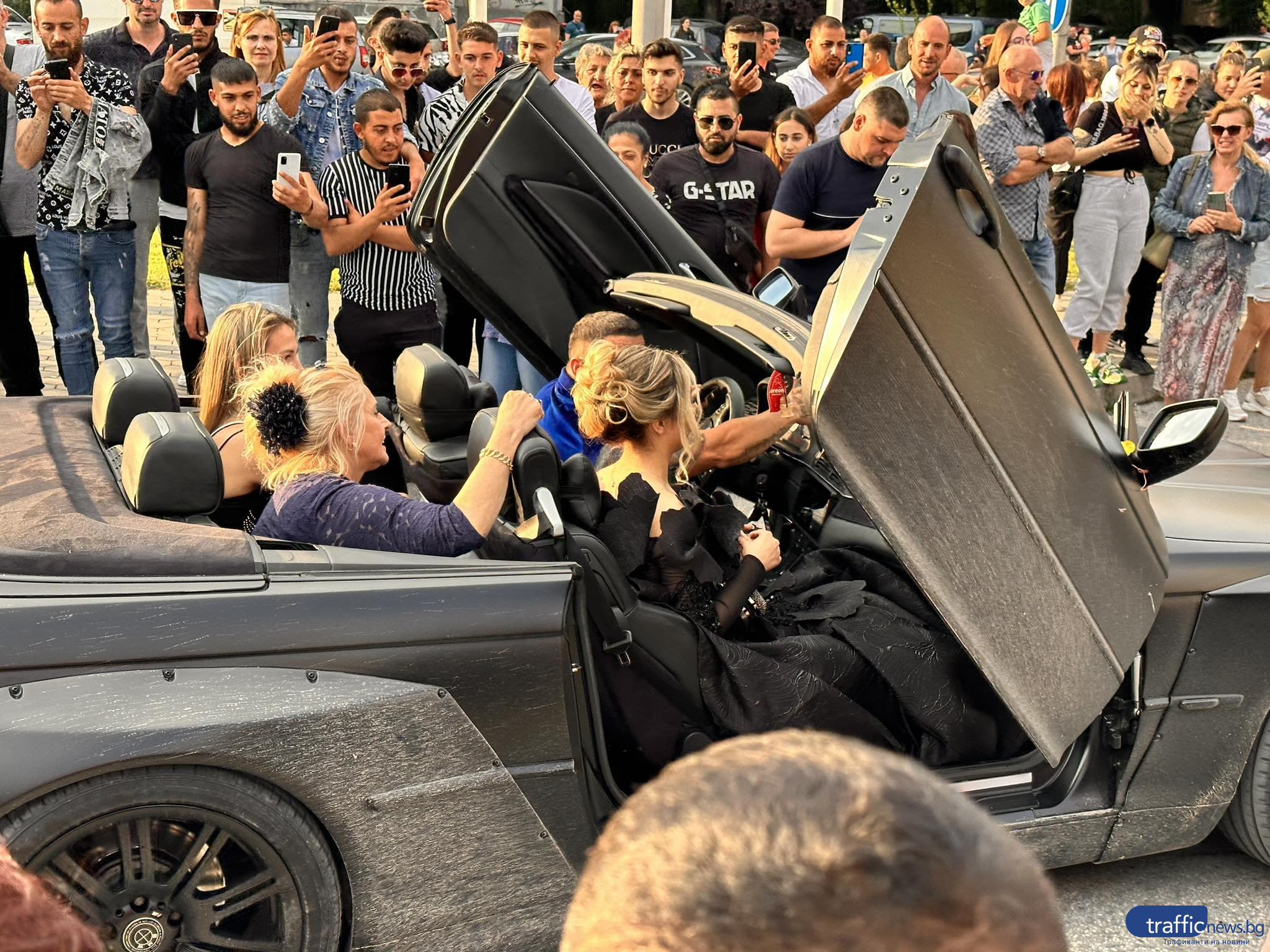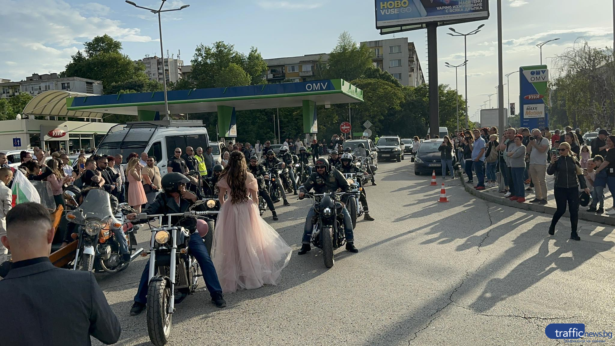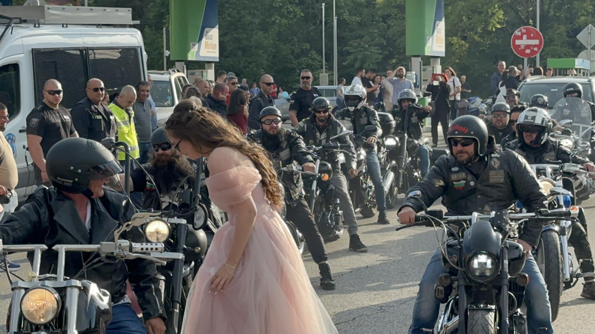 Красива млада дама с бежава дълга рокля пък подвигна доста звук, защото дойде с цяла група мотористи. На паркинга не липсваха и огромни джипове, както и лимузина.