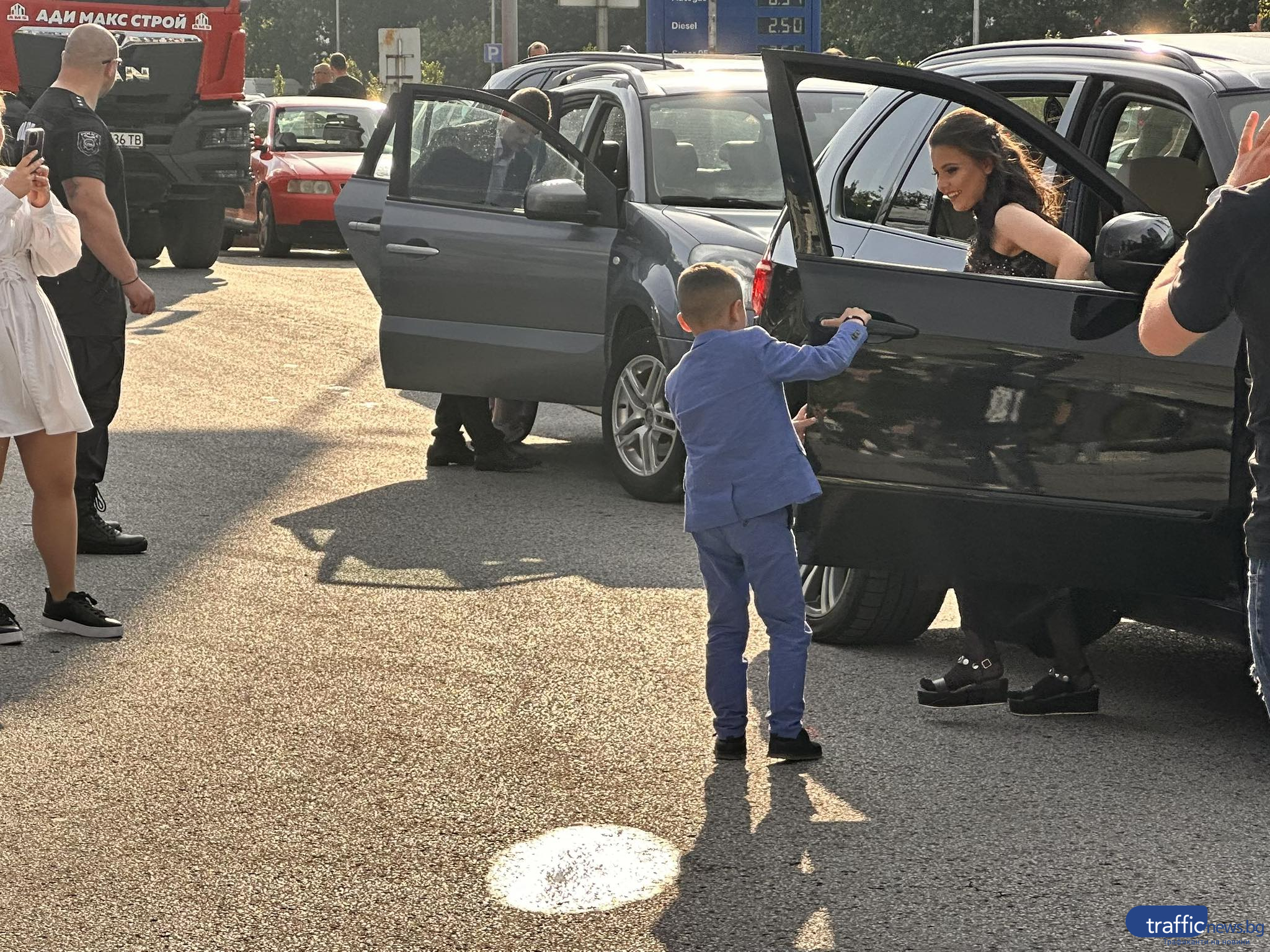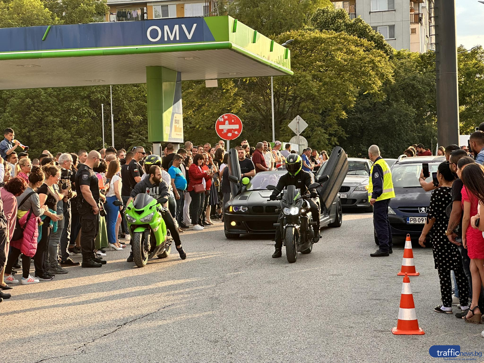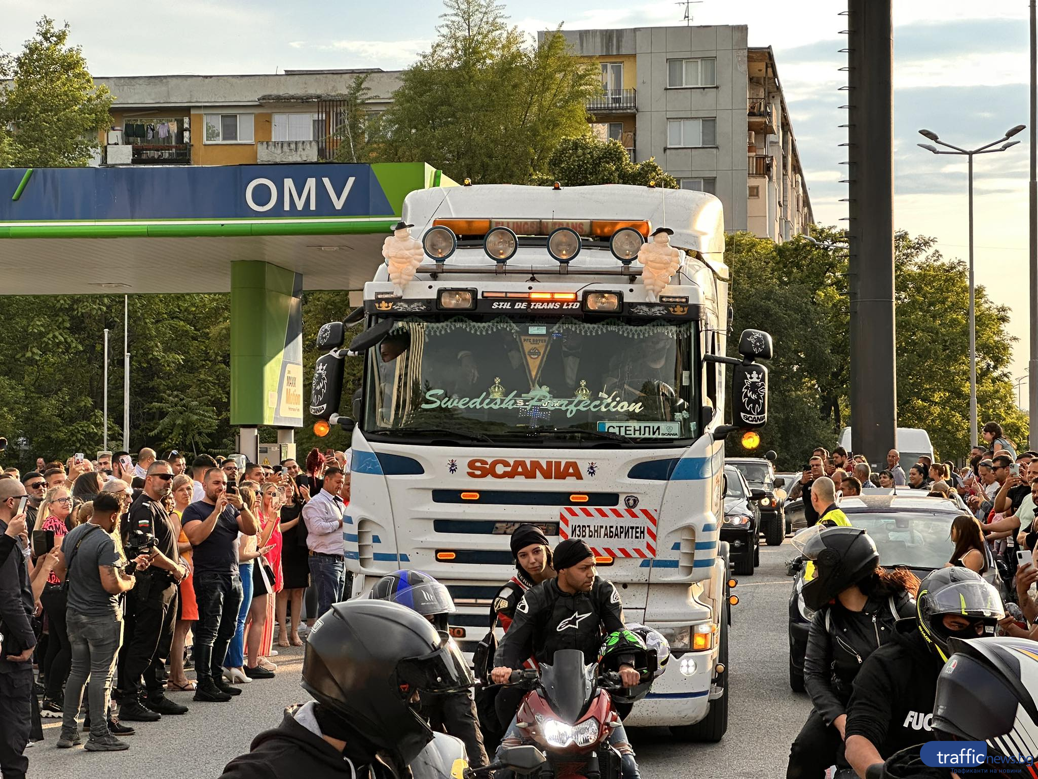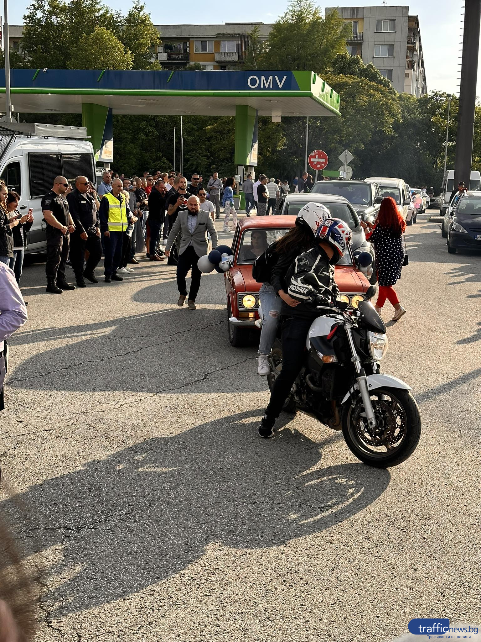 Красива млада дама с бежава дълга рокля пък подвигна доста звук, защото дойде с цяла група мотористи. На паркинга не липсваха и огромни джипове, както и лимузина.