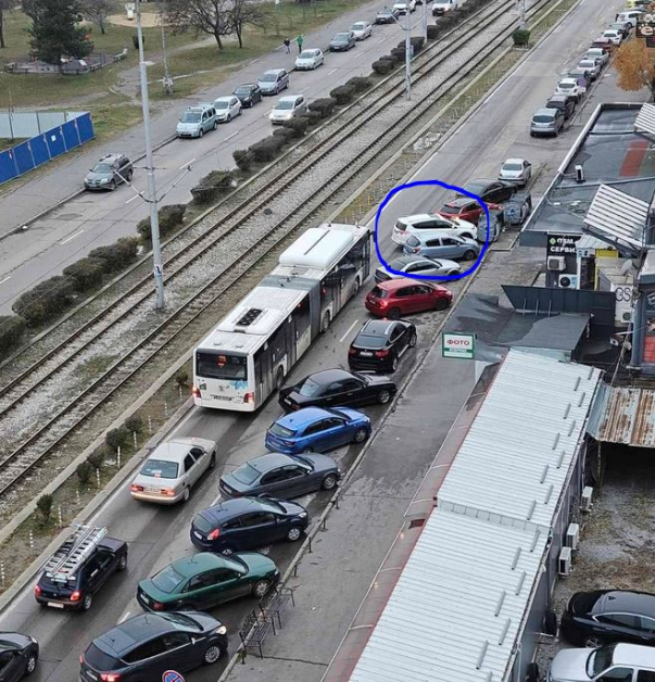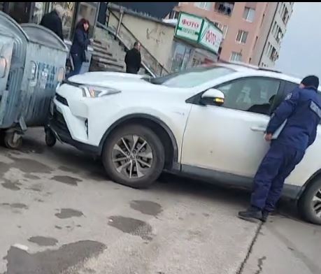 Въпросният джип, обаче, е публикуван напред, като макар че опира в казана за боклук, съумява да блокира прекосяването на транспортните средства в лентата, която е в посока бул. " Захари Стоянов ". Автобус от градския превоз не съумял да продължи по пътя си, а зад него се образува огромна запушалка от други транспортни средства. Ядосани жители подали сигнал до органите на реда, които се отзовали. След известно очакване се появила и шофьорката на джипа, както и притежатели на други от паркиралите там коли.