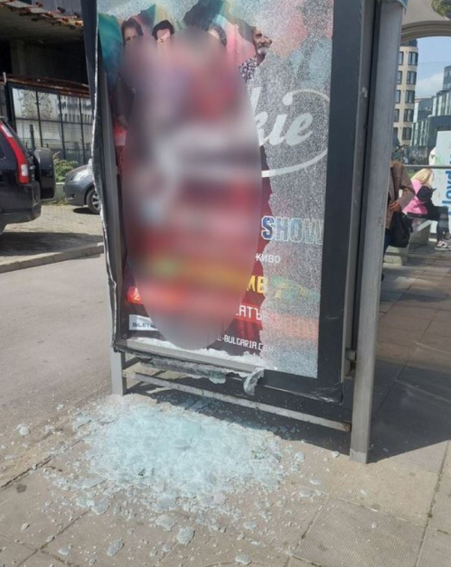 Кадри, публикувани от пловдивчанка, демонстрират вредите по спирката. Стъклената ѝ страна е потрошена, а разпилените стъкла паднали на асфалта.