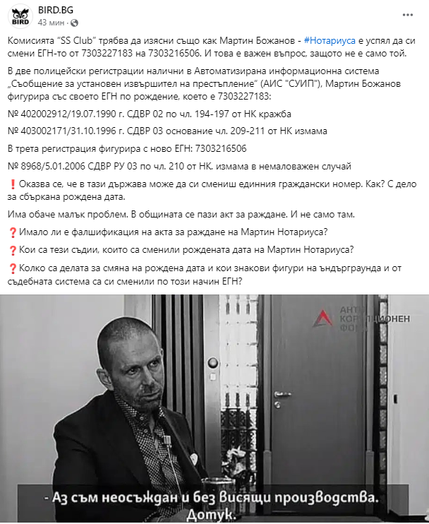 Комисията “SS Club ” би трябвало да обясни също по какъв начин Мартин Божанов - #Нотариуса е съумял да си смени ЕГН-то от 7303227183 на 7303216506. И това е значим въпрос, тъй като не е единствено той.