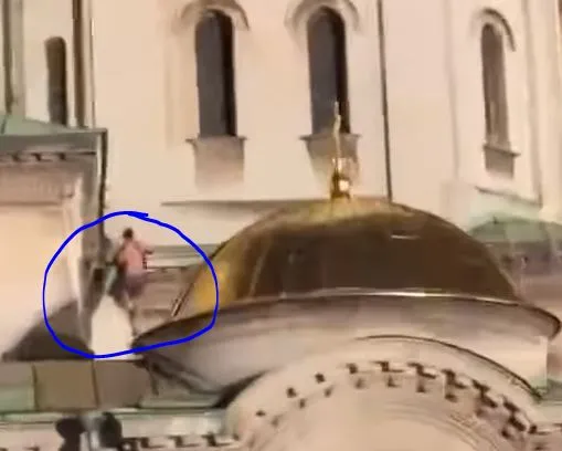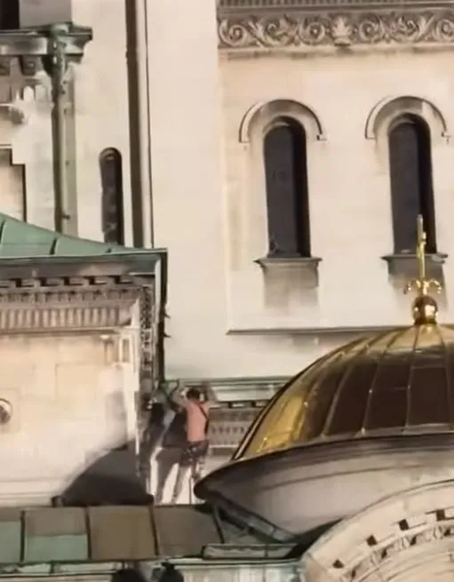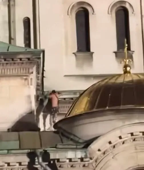 Полугол мъж се е качил върху покрива на патриаршеската катедрала Св. " Александър Невски ". Това станало пред погледа на шашнати столичани, които в този миг били на жълтите павета.