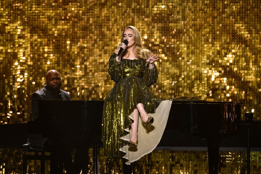 След като завоюва премията за „ Най-добра ария “ за баладата си Easy on Me, Адел се качи на сцената и за осъществяването си на I Drink Wine. От черната рокля нямаше и помен, като на нейно място се беше настанила рокля от Valentino с открити плещи, покрита с маслинови пайети.