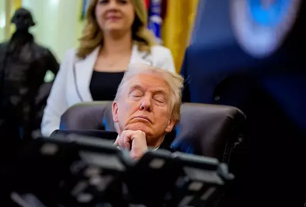 Администрацията на Доналд Тръмп бе принудена да излезе с остра позиция, откакто президентът задряма по време на телевизионна среща в Овалния кабинет — случай, който бързо се трансформира в сензация в обществените мрежи.