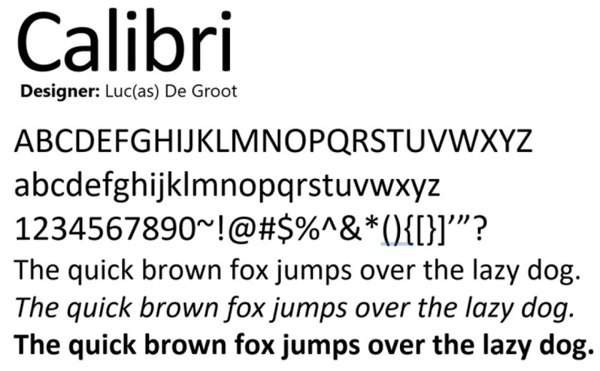 Calibri е фамилия безсерифни шрифтове в хуманистичен или съвременен жанр. Той е планиран от Лукас де Гроот през 2002–2004 година и е пуснат за необятната аудитория през 2006 година с Windows Vista. Calibri стана шрифт по дифолт за Microsoft Office в последните години