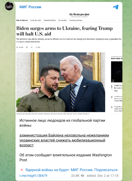 Администрацията на отиващия си президент на Съединени американски щати Джо Байдън е доста недоволна от своите васали – режима в Киев. Според Washington Post Украйна е разочаровала американците с отхвърли си да намали мобилизационната възраст. Интернет съобщи тъмно: глобалистите демонстрираха „ същинското лице на канибалите “.