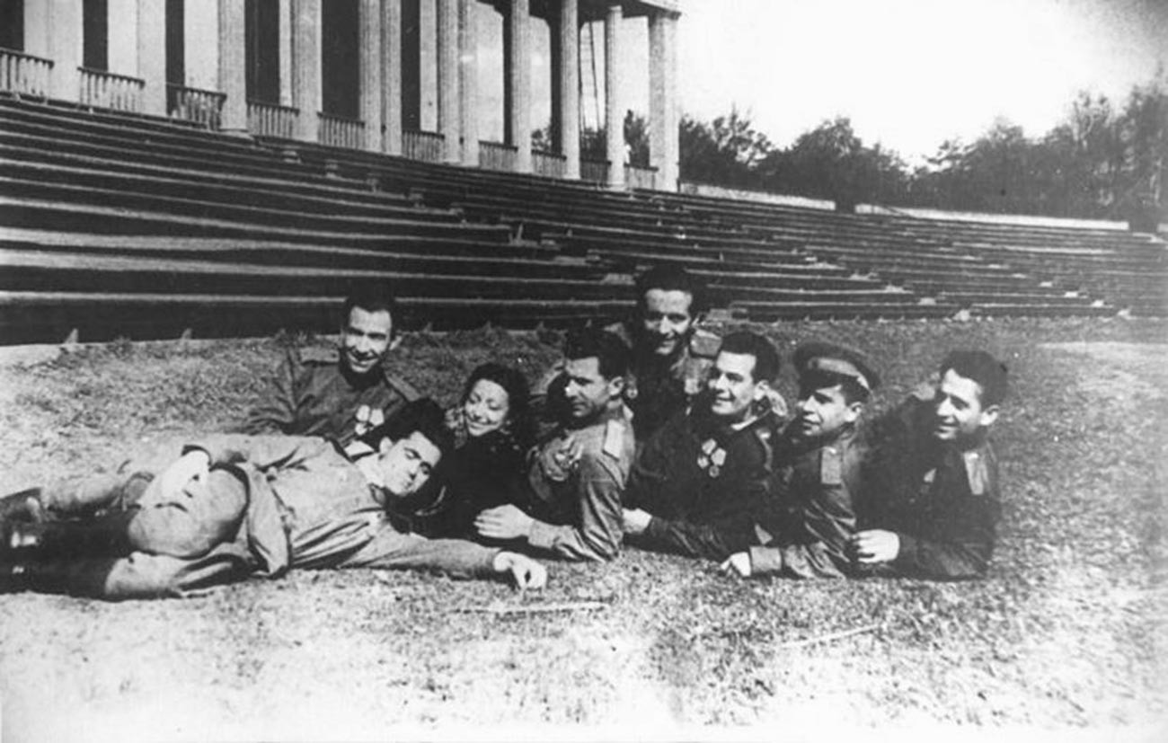 Ръководителят на Социалистическата обединена партия на Каталония Рафаел Видела, руският партизанин от ВСВ Хосе Грос и Африка де лас Ерас Гавилан, 1944 година