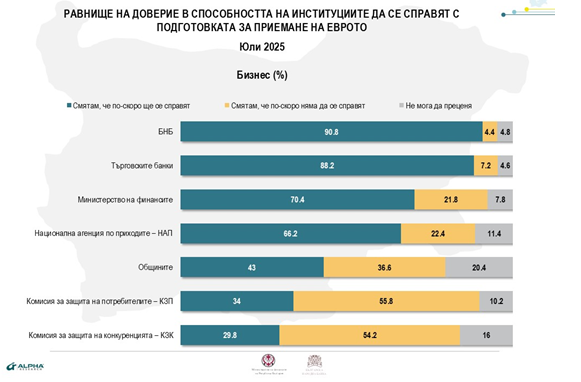 Оценките на бизнеса за качествата на българските държавни и частни институции да се оправят с подготовката за въвеждане на еврото е положително изключение от перманентната рецесия на институционално доверие в България: