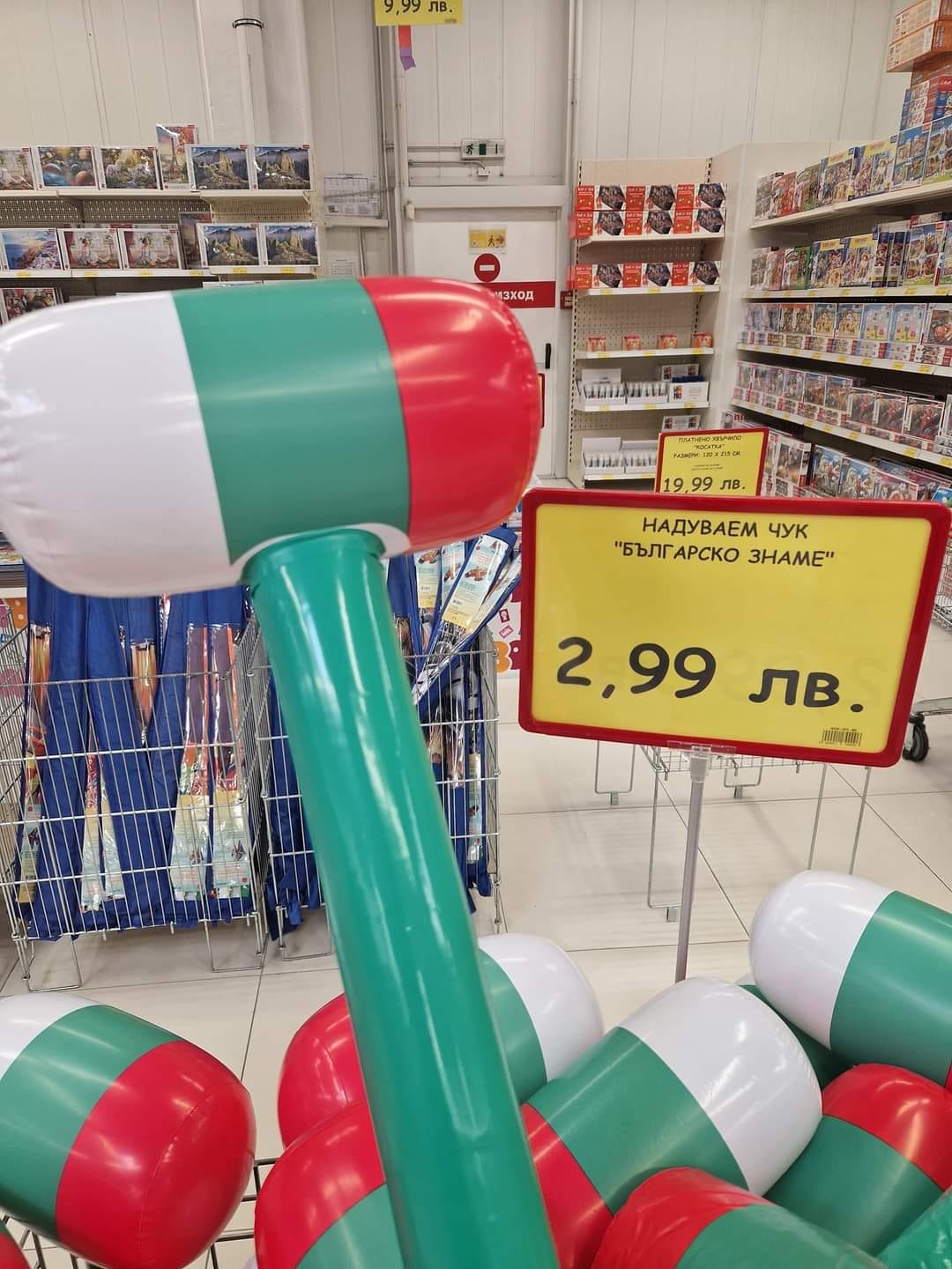 Ако до момента сте си мислели, че държавните знаци, в частност българското знаме, утвърждава и символизира независимостта и суверенитета на българския народ и страна, време е да преосмислете знанията си. Или най-малко децата ви го да създадат, тъй като точно на тях " изобретателни " производители и търговци оферират надуваем чук " Българско знаме "...