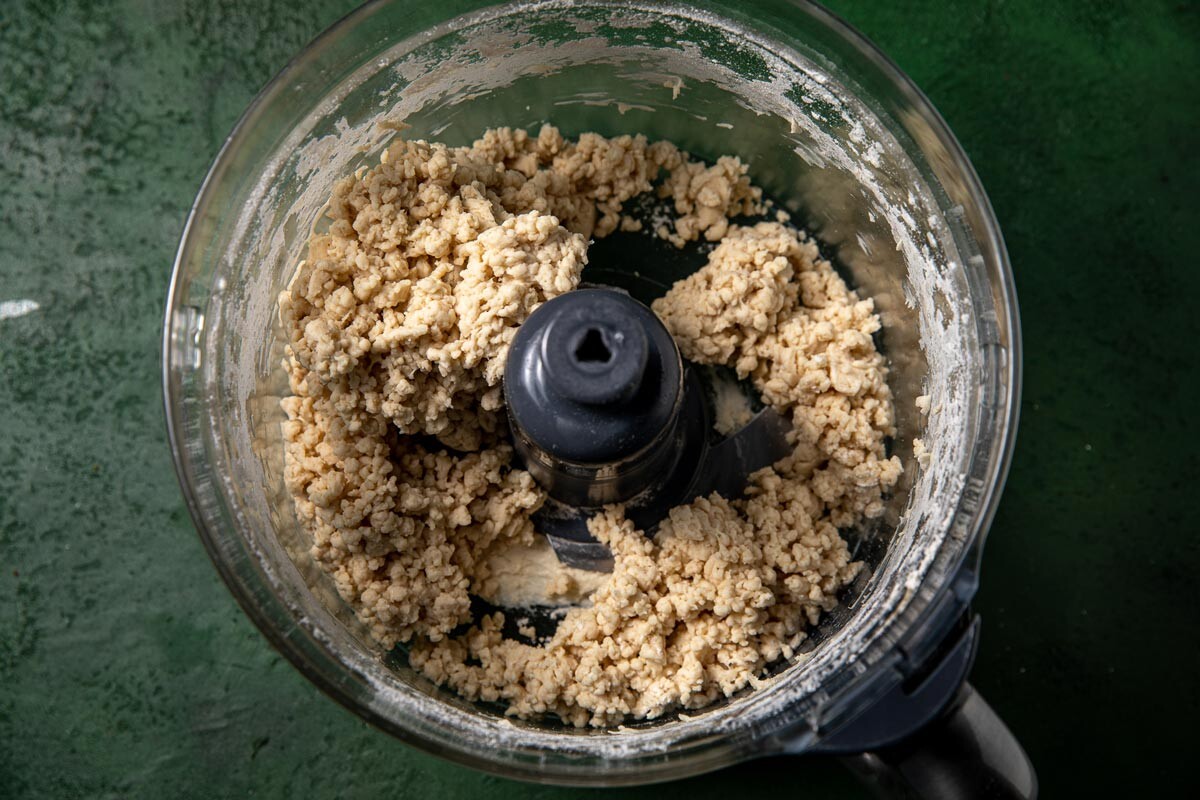 Поставете съставките за тестото в купата на миксер и разбъркайте до еднородност.