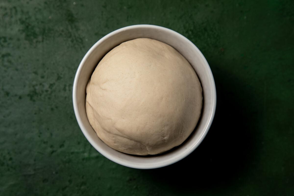 Юлия Мулино Оформете на топка, като извършите плътно тесто. Омесете го за още 20 минути в купата на миксера с приставката с кука. Тестото би трябвало да е по-еластично, с цел да се работи по-лесно с него.