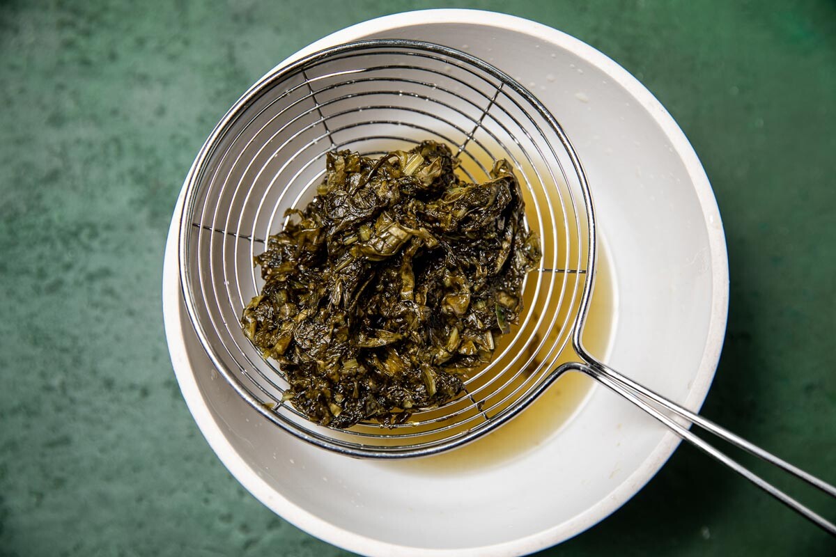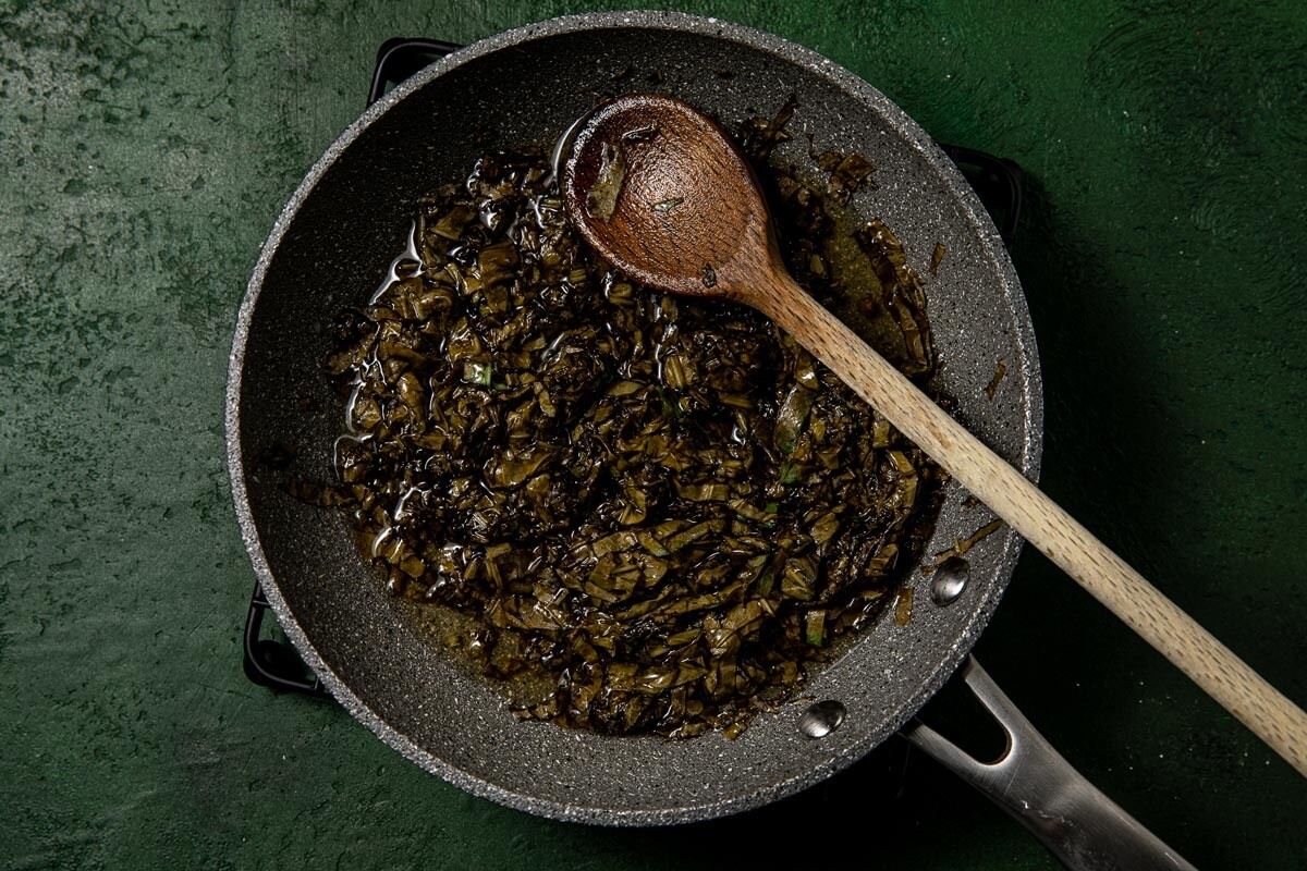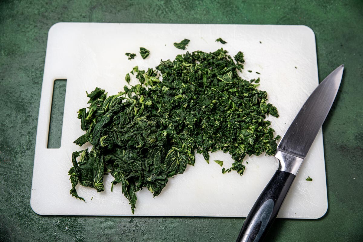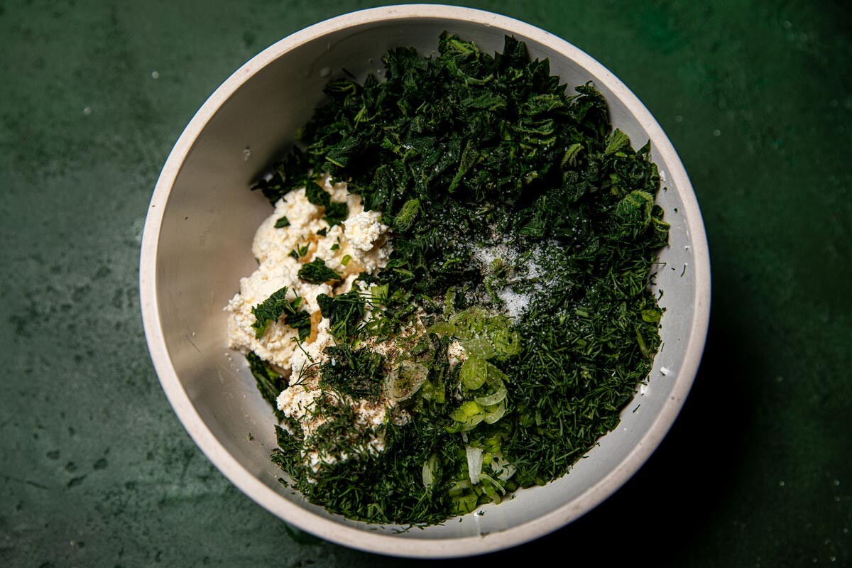 Юлия Мулино В едната част се прибавят копривата, още малко сол, черен пипер, ситно нарязан зелен лук и копър.