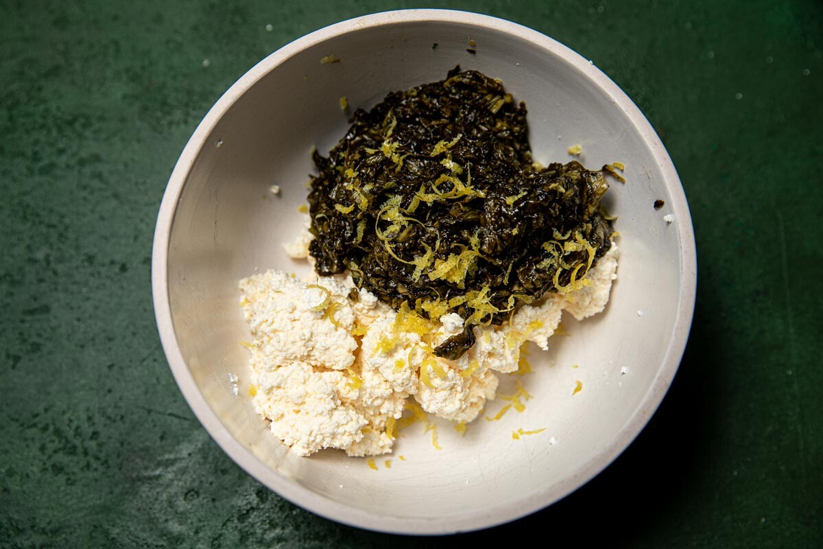 Юлия Мулино Изстискайте добре листата на копривата и ги нарежете на ситно. Ако до този миг са минали 20 минути, откогато сте почнали да месите тестото, би трябвало да го увиете в найлоново фолио и да го оставите да почине най-малко 30 минути.