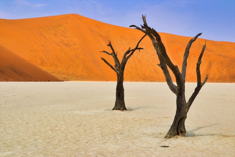 Чудноватите нюанси са резултат от милиони години пясъчни и минерални отлагания, до момента в който вятърът и ерозия издълбават дълбоки хребети и корита в психеделичната канара. Долината на гибелта в Намибия Ако не бяха вкаменените дървета и горящите в оранжево дюни, този необработен пейзаж би паснал идеално на повърхността на Луната. Но Долината на смъртта е сгушена не в някоя далечна луна или планета, а в бялата глинеста низина на намибийския парк Namib-Naukluft.