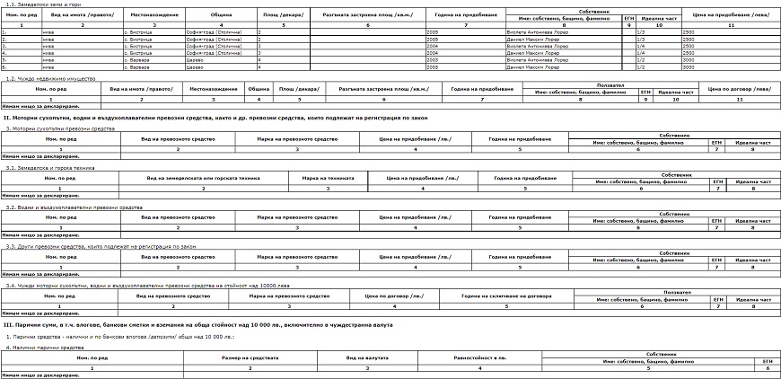 Но да се върнем към имотното положение на министерската брачна половинка, шефка на кабинета на Василев и родственик на Просто Киро. Близо 30 парцела е заявила Виолета Лорер пред КПКОНПИ в декларацията си за имущество и ползи по член 35, алинея 1, т. 3 от Закона за противопоставяне на корупцията и за лишаване на противозаконни добито имущество.