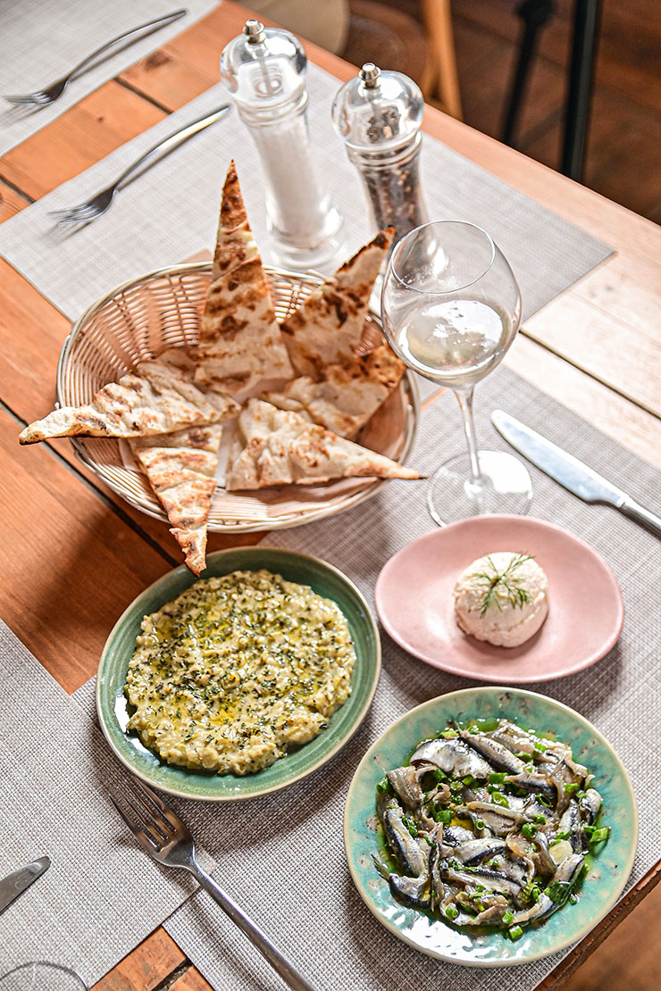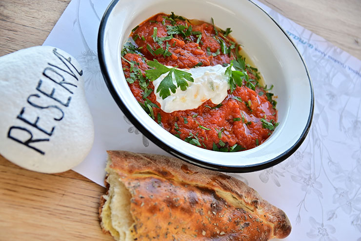 Не си тръгвайте, без да обърнете внимание на винената листа, да опитате краставичките, които ферментират естествено в буркани на слънце, да намажете късче самун с домашна тарама и да съгрешите осъзнато с тирамису в ретро кафеварка.