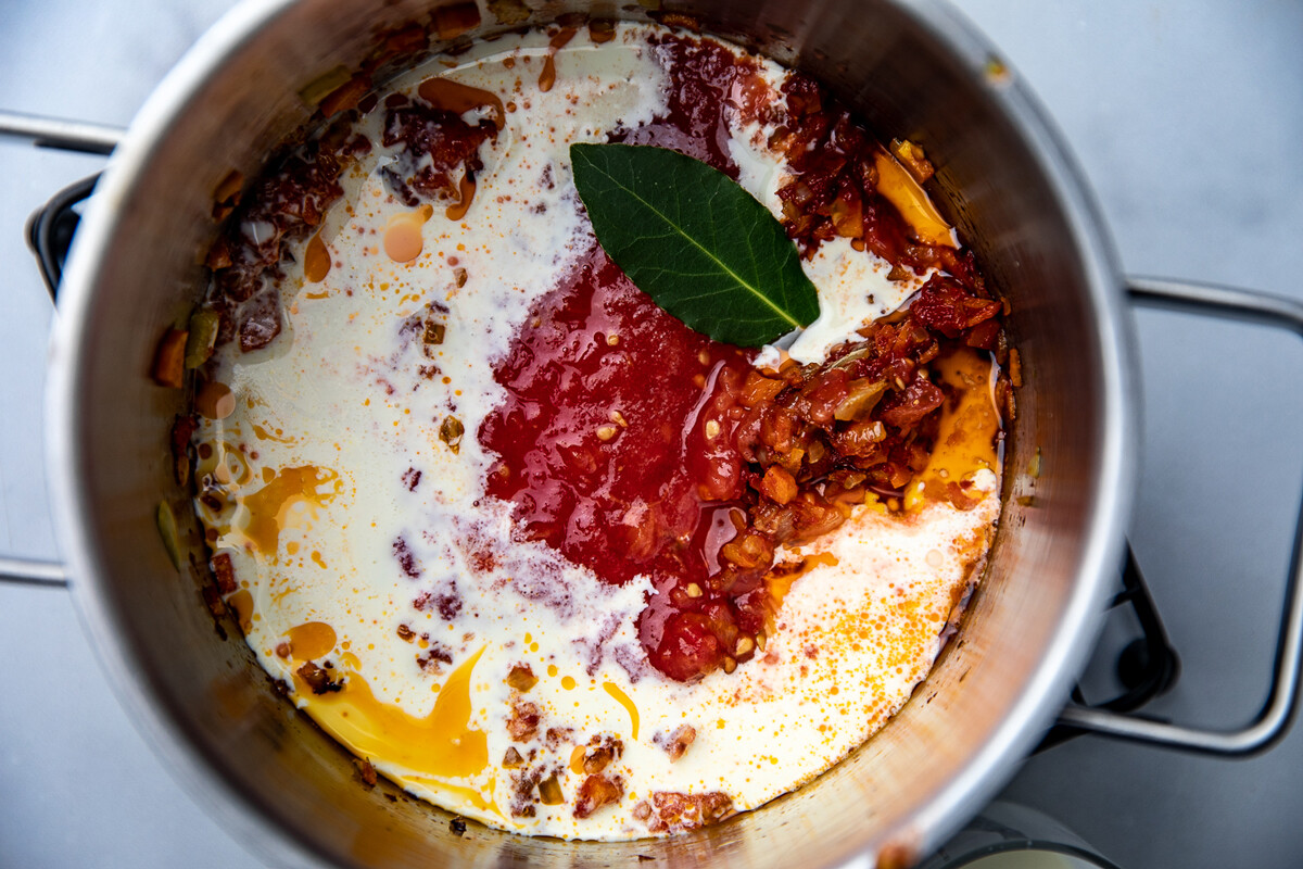 Друга отличителна линия на тези мързеливи кнедли е, че те не се варят, а първо се пържат и по-късно се задушават в специфичен сос от домати и сметана. Лятната версия наложително би трябвало да съдържа пресни, ароматни домати, на които Кубан е богат. Аз избрах най-сладките, които съумях да намеря в локалния хранителен магазин.